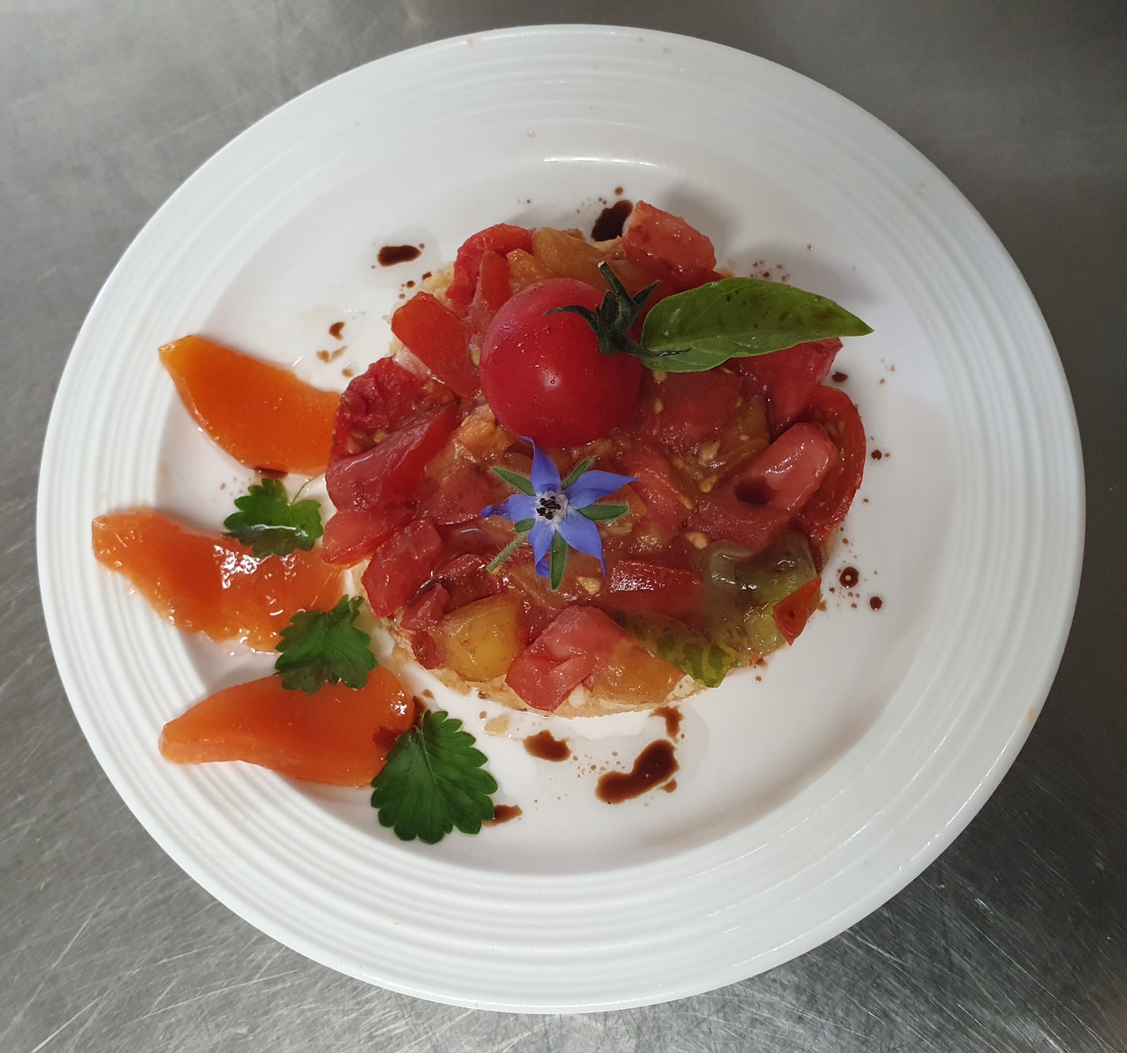 Tomates cerises fraiches cueillies quelques minutes avant d'être dans l'assiette.